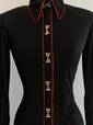 Black Fitted Shirt with Hidden Zip Front and Orange Piping